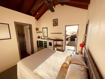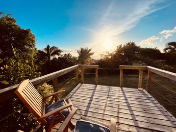 The terrace is protected from the trade winds for alfresco dining and relaxing in the shade on the day bed. Relax dining and cooking inside and outside on the terrace.